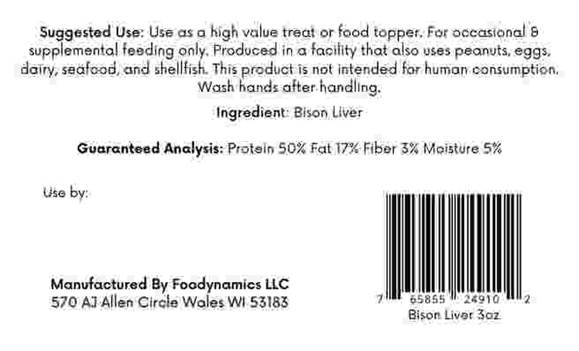Freeze Dried Bison Liver is designed for occasional and supplemental feeding. It's not a replacement for a complete and balanced diet. Always ensure fresh water is available and consult with your veterinarian for any specific dietary concerns.