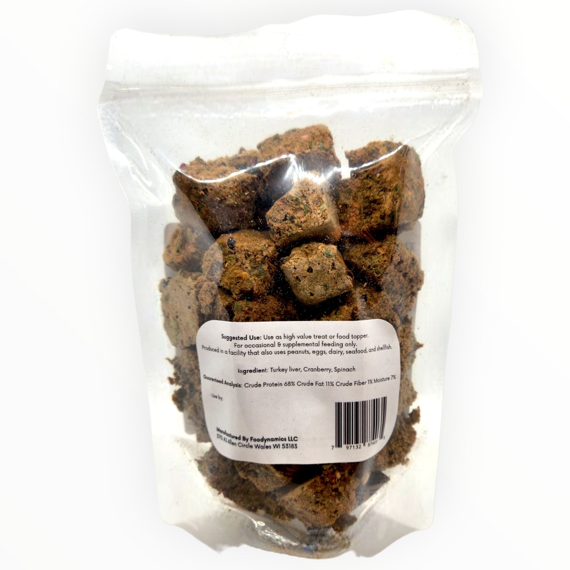 Ingredients: Freeze-Dried Turkey Livers, Cranberry, Spinach